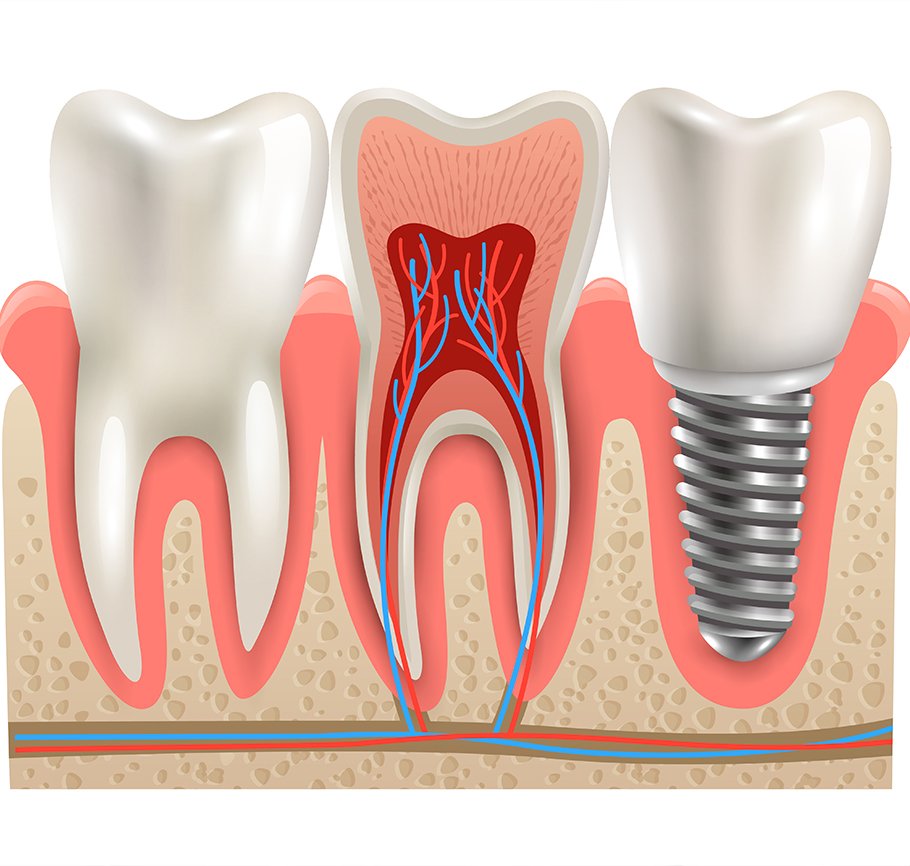 In basic terms dental implants are a man made and manufactured alternative to the natural root of your tooth. Generally speaking implants are made from high specification dental and medical grade titanium. The amazing thing is that the human body does not recognize titanium as a foreign object, this means the dental implant will totally integrate with the natural surroundings of your jaw.